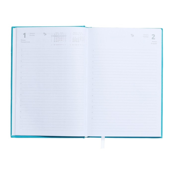 Ежедневник датированный 2025 года, deVENTE. Flag, A5 168 листов, Attomex. Even, твердая обложка бумвинил с поролоном, шелкография, ляссе, блок 70 г/м2, бирюзовый