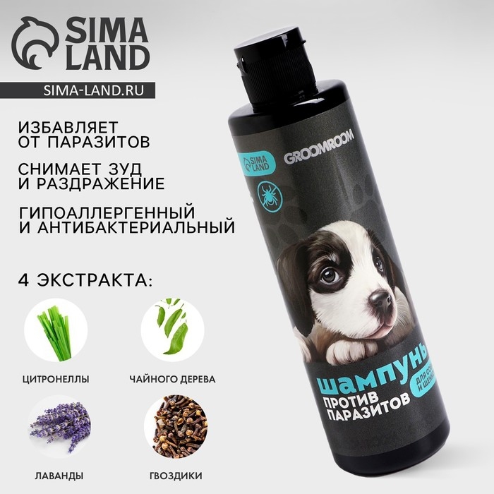 Шампунь "Пижон" антипаразитарный от блох и клещей, для кошек и собак, 250 мл