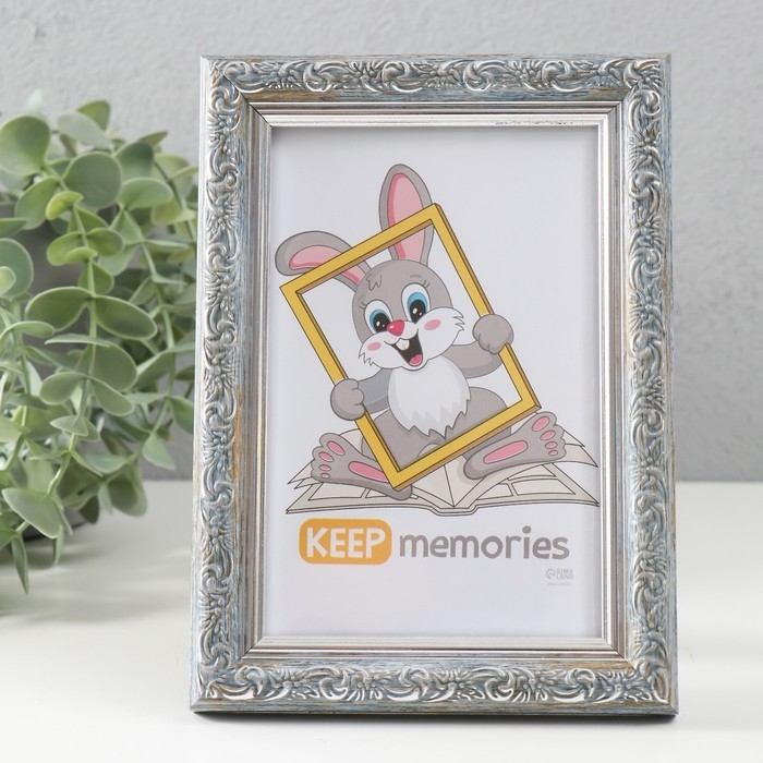 Фоторамка пластик "Винтаж" 10х15 см, морозное серебро