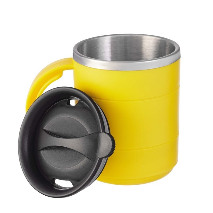 - Яркий желтый цвет поднимает настроение и привлекает внимание, делая термокружку заметной в любых условиях