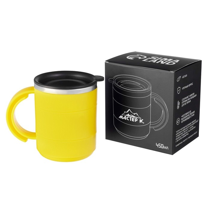 Термокружка "Мастер К" Поход, 450 мл, с ручкой, сохраняет тепло 2 ч, 12.5 х 10.5 см, желтая