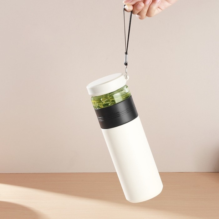 Для удобства переноски воспользуйтесь ремешком, который идет в комплекте с термосом. Теперь ваш напиток готов к употреблению в любое время и в любом месте!