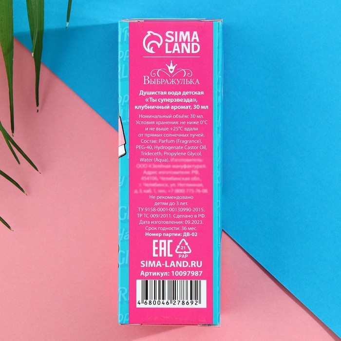 Душистая вода детская «Ты супер звезда», 30мл, клубника