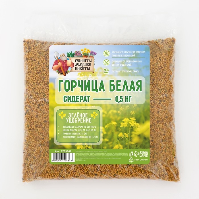 Семена Горчица белая "Рецепты дедушки Никиты", 0,5 кг
