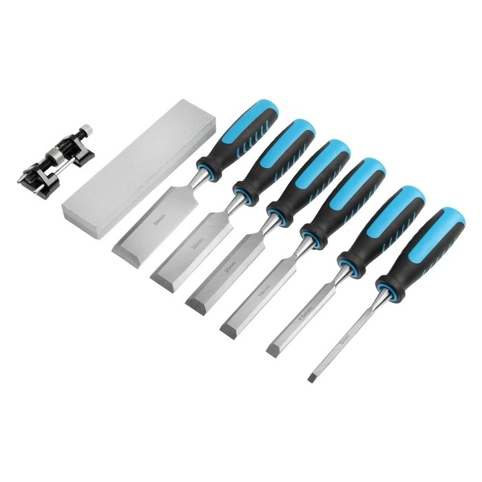 Набор стамесок ТУНДРА, 2К рукоятки, 45 сталь, 6 - 38 мм, с набором для заточки, кейс, 6 шт. 960445