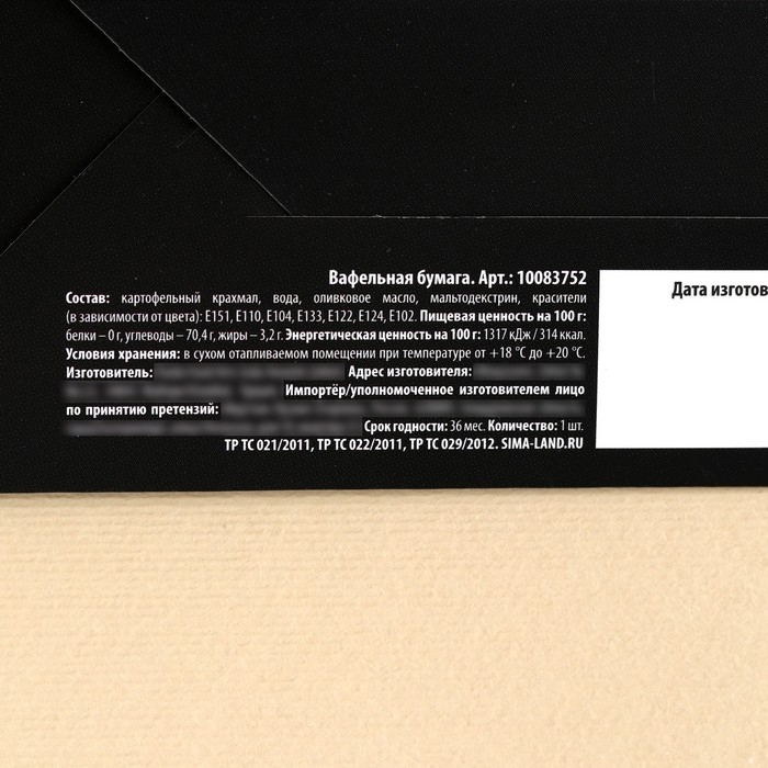 Состав: картофельный крахмал, вода, оливковое масло, мальтодекстрин, красители (в зависимости от цвета): Е151, Е110, Е104, Е133, Е122, R124, Е102.