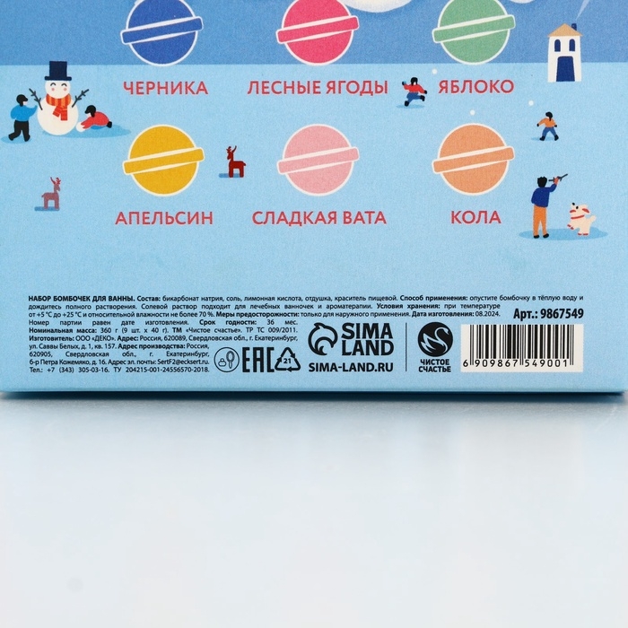 Набор бомбочки для ванны ЧИСТОЕ СЧАСТЬЕ «Волшебство», 9х40 г, Новый Год