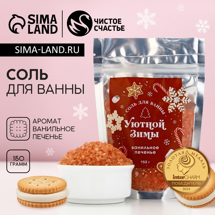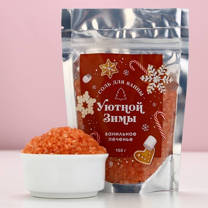 Соль для ванны ЧИСТОЕ СЧАСТЬЕ «Уютной зимы!», 150 г, аромат ванильного печенья, Новый Год