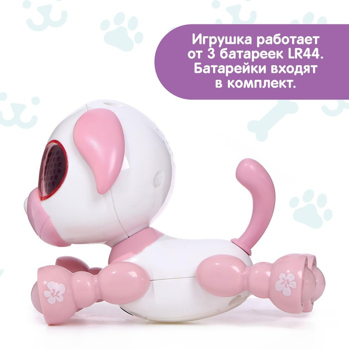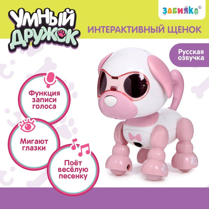 Робот собака «Умный дружок», интерактивный: с записью звуков, свет, звук, сенсорный, музыкальный, на батарейках, розовый