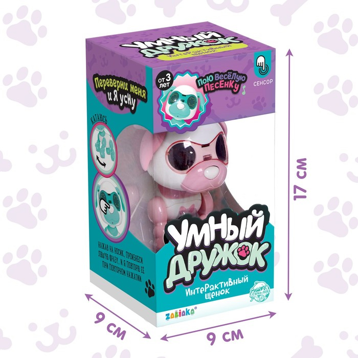 Коснитесь сенсора на голове щенка, и он будет лаять. При повторном касании заиграет весёлая песенка. Переверните и потрясите щенка 3 секунды, и он уснёт.