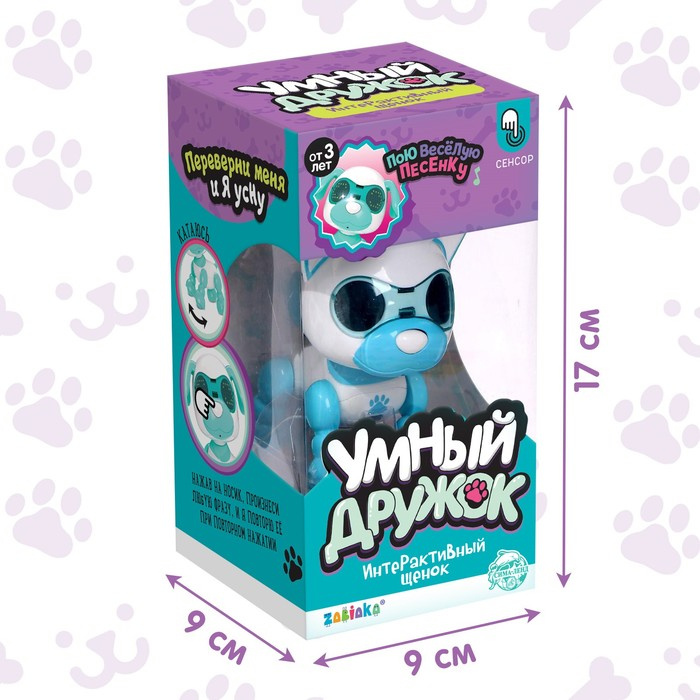Коснитесь сенсора на голове щенка, и он будет лаять. При повторном касании заиграет весёлая песенка. Переверните и потрясите щенка 3 секунды, и он уснёт.