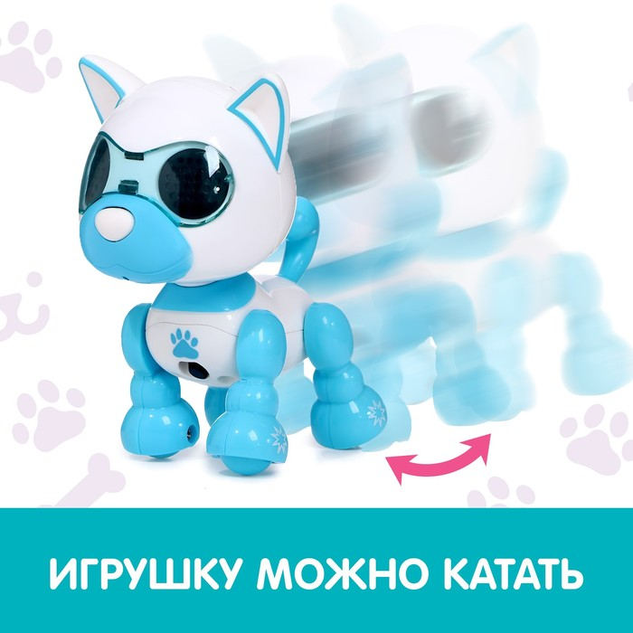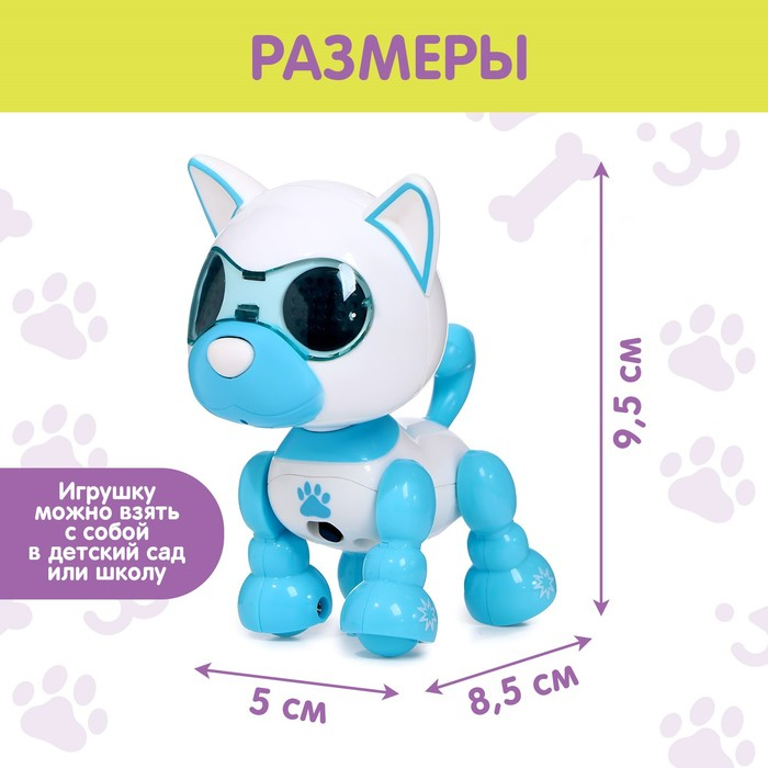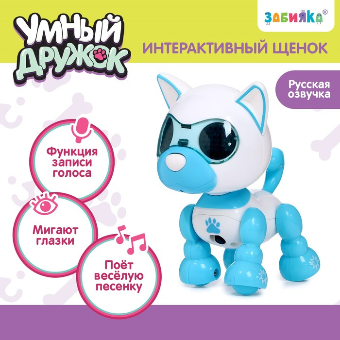 Робот собака «Умный дружок», интерактивный: с записью звуков, свет, звук, сенсорный, музыкальный, на батарейках, голубой