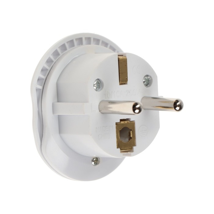 Переходник универсальный 16А, с з/к, 220 В, белый, заподлицо в розетку, 1шт.