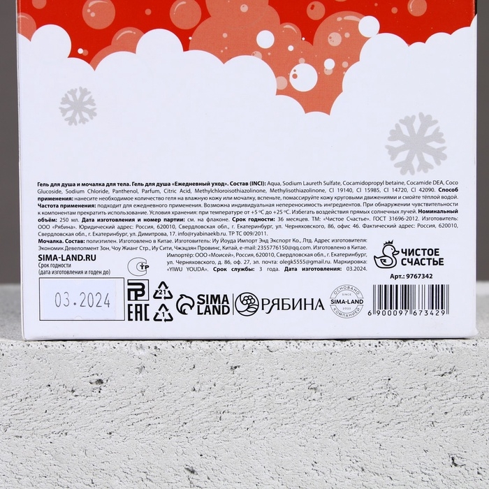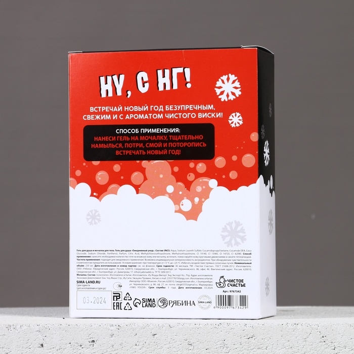 Подарочный набор ЧИСТОЕ СЧАСТЬЕ «Кайфового Нового Года»: гель для душа 250 мл и мочалка для тела