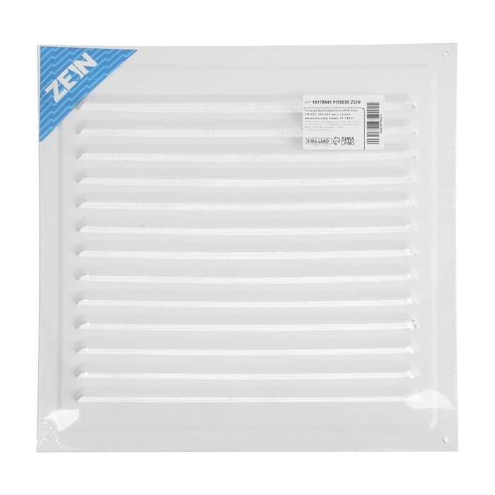 Решетка вентиляционная ZEIN Люкс РМ3030, 300 х 300 мм, с сеткой, металлическая, белая