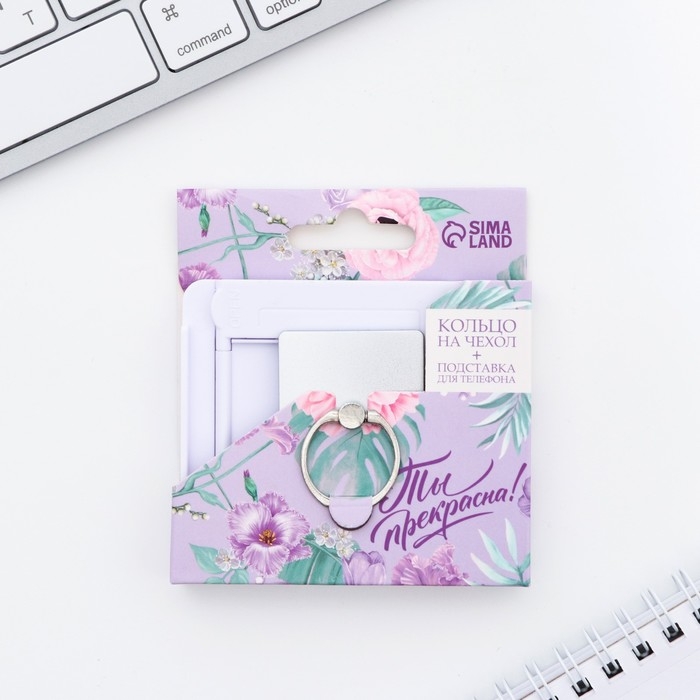 Подарочный набор подставка для телефона и кольцо на чехол «Ты прекрасна!»