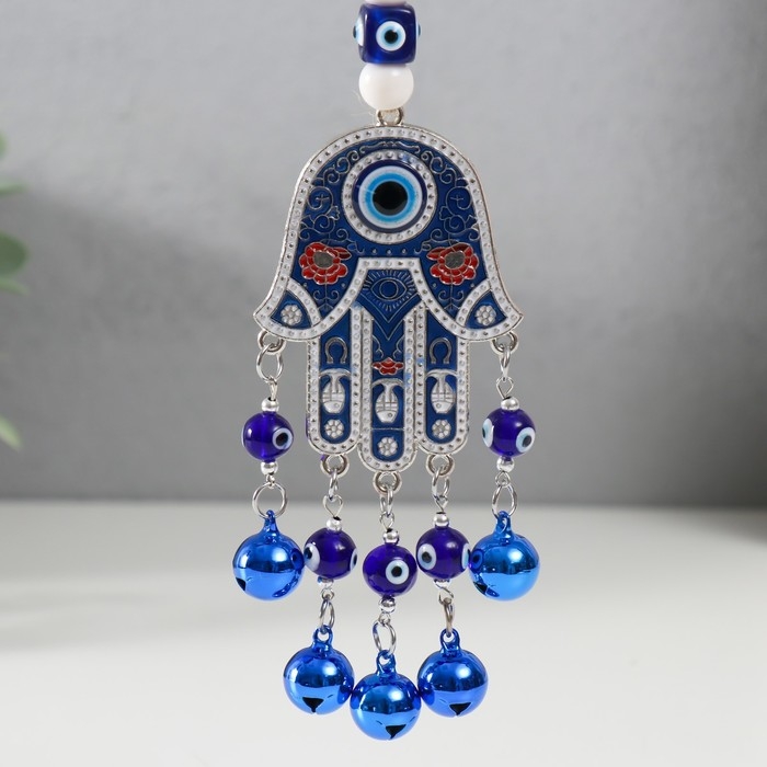 Музыка ветра металл, пластик от сглаза "Рука Фатимы с 5 колокольчиками" 26,7х6х1,5 см