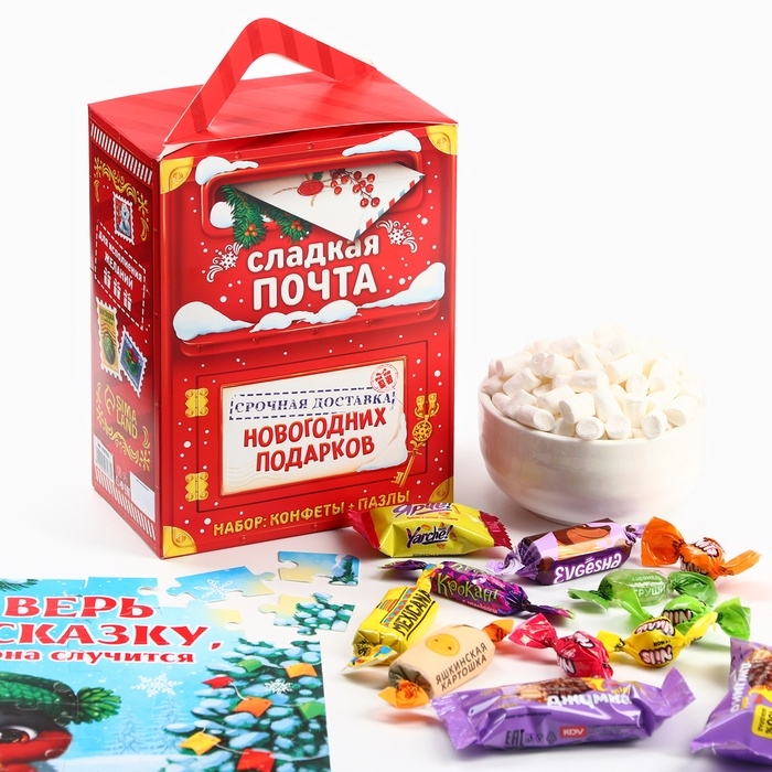 Сладкий детский подарок «Новогодняя почта»: шоколадные конфеты и пазлы, 500 г.