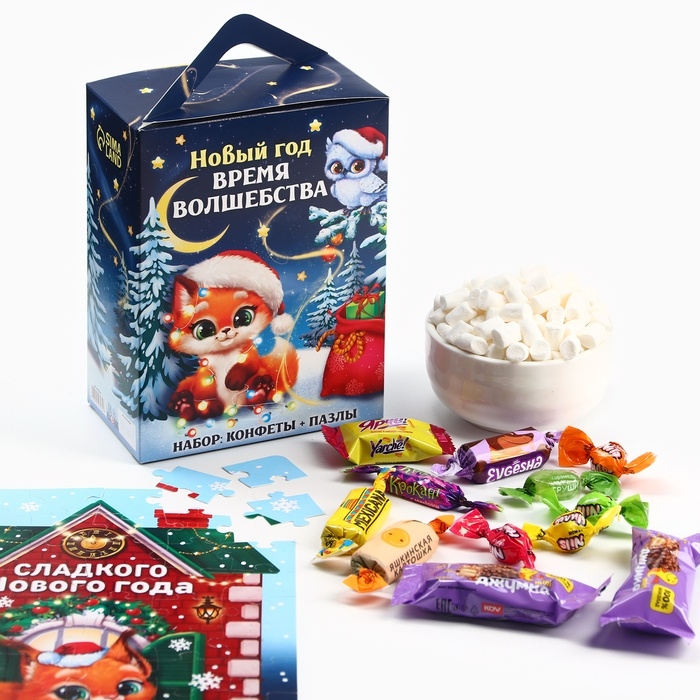 Сладкий детский подарок «Время волшебства»: шоколадные конфеты и пазлы, 500 г.
