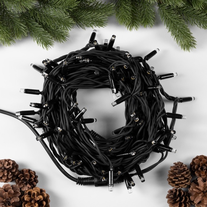 Гирлянда «Нить» 10 м, IP65, УМС, тёмная каучуковая нить, 100 LED, свечение тёплое белое, 220 В