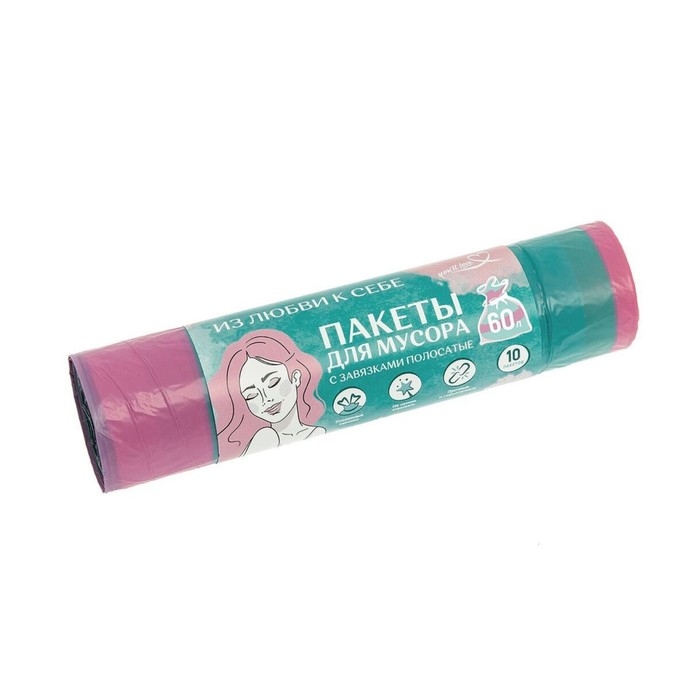 Пакеты для мусора с завязками полосатые, 10 шт, 60 л