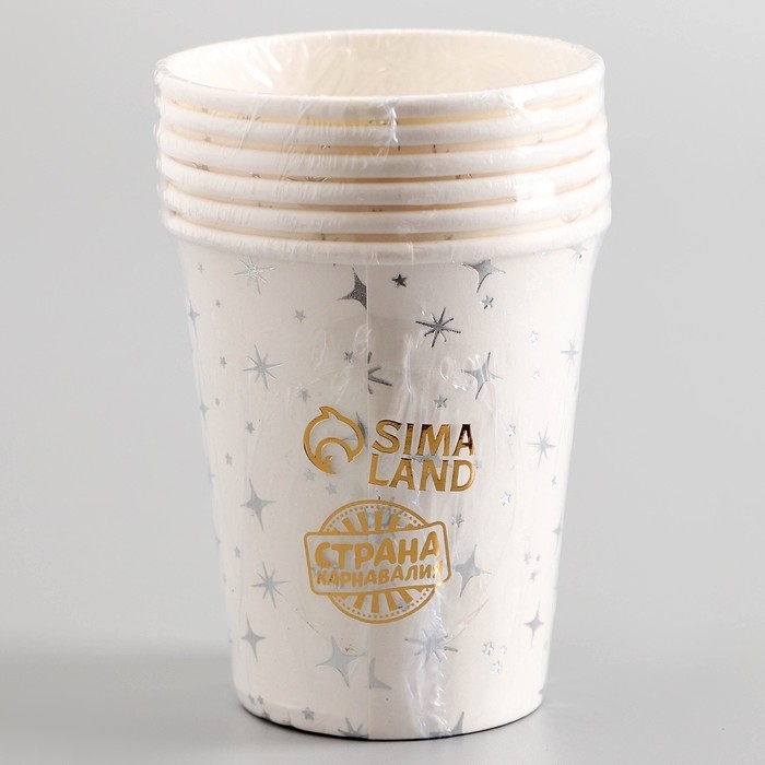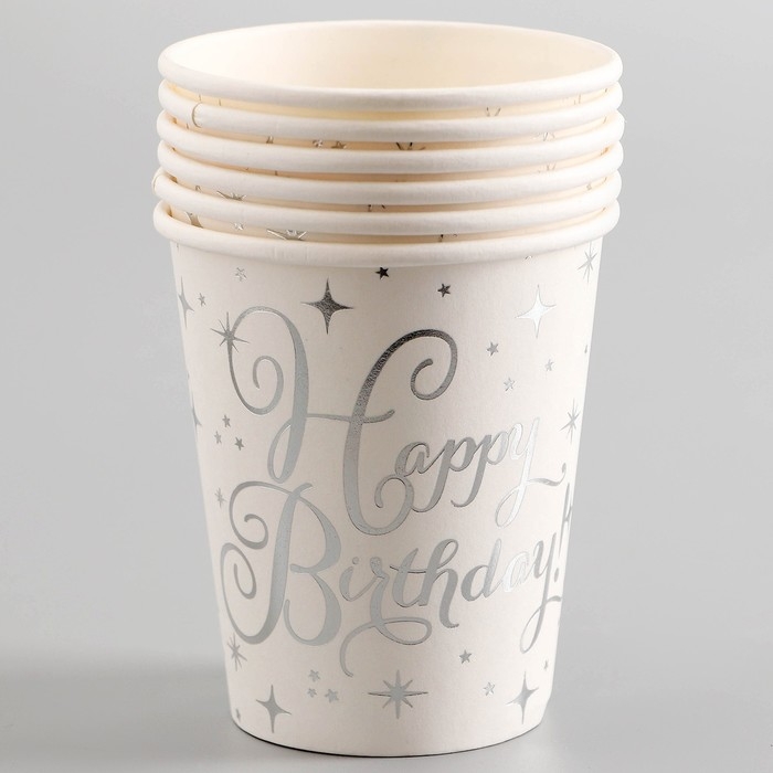 Стаканы бумажные «С днём рождения» с серебрянными звёздами, 6 шт.