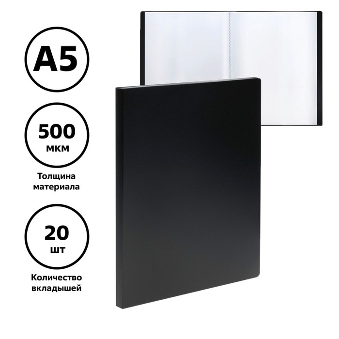 Папка с 20 вкладышами А5, 500 мкм, Calligrata, текстура "песок", черная