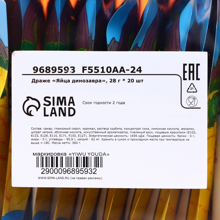 Набор драже "Яйца динозавра", 28 г * 20 шт