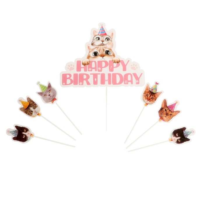 Набор топперов «С днём рождения. Котики», набор 7 шт.