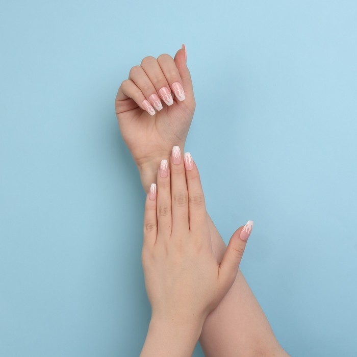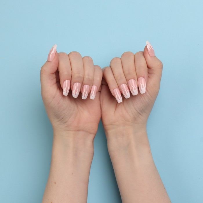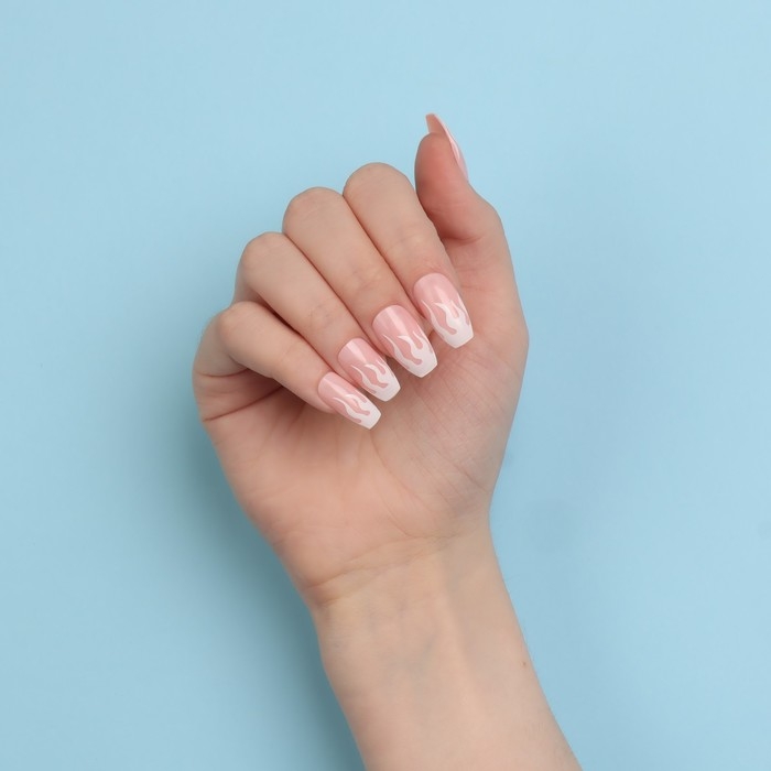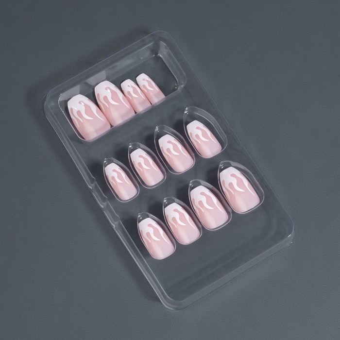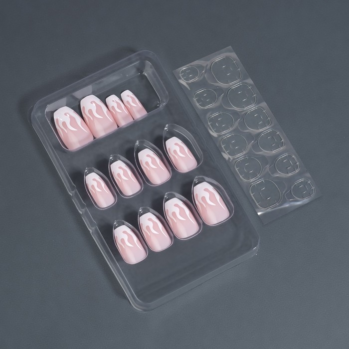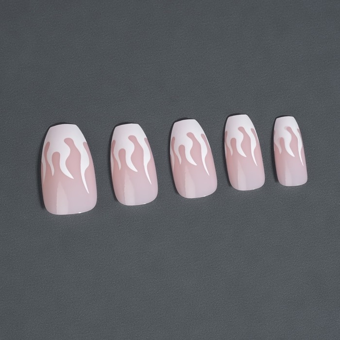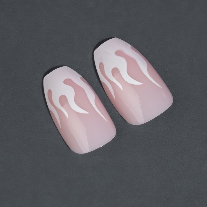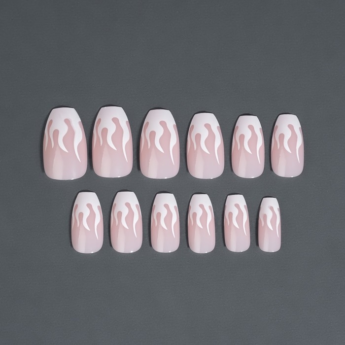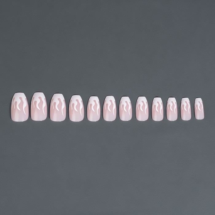 Накладные ногти «Fire», 12 шт, с клеевыми пластинами, форма балерина, розовые, белые