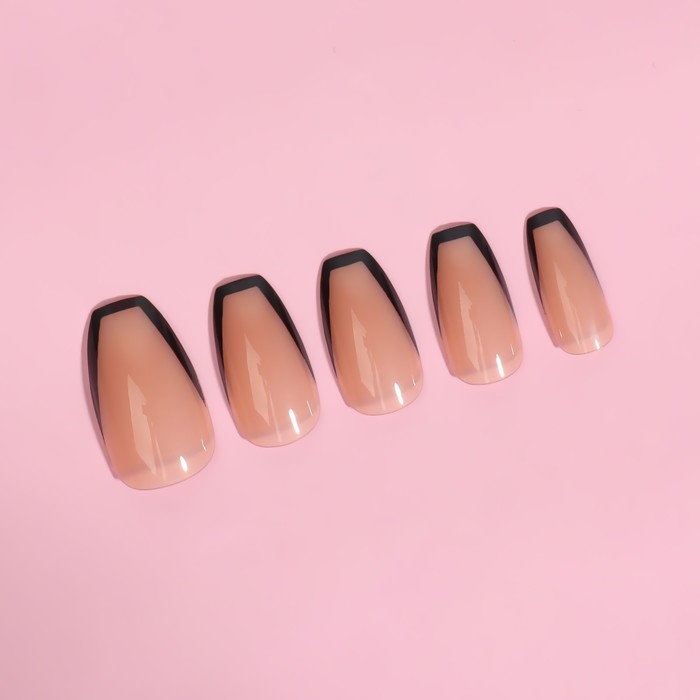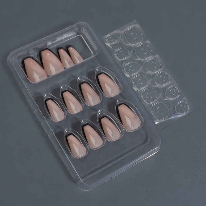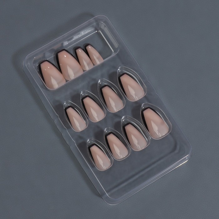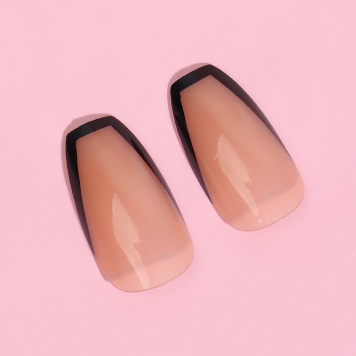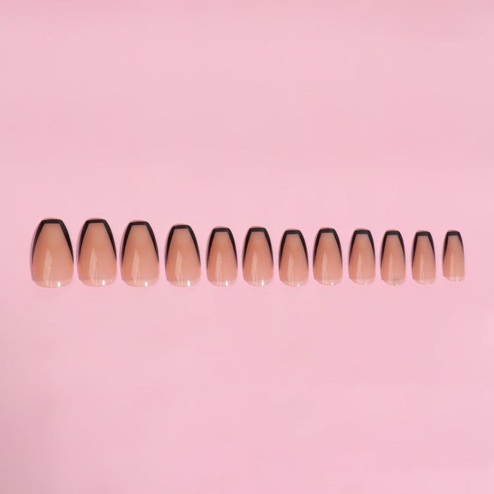 Накладные ногти «Franch», 12 шт, с клеевыми пластинами, форма балерина, бежевые, чёрные
