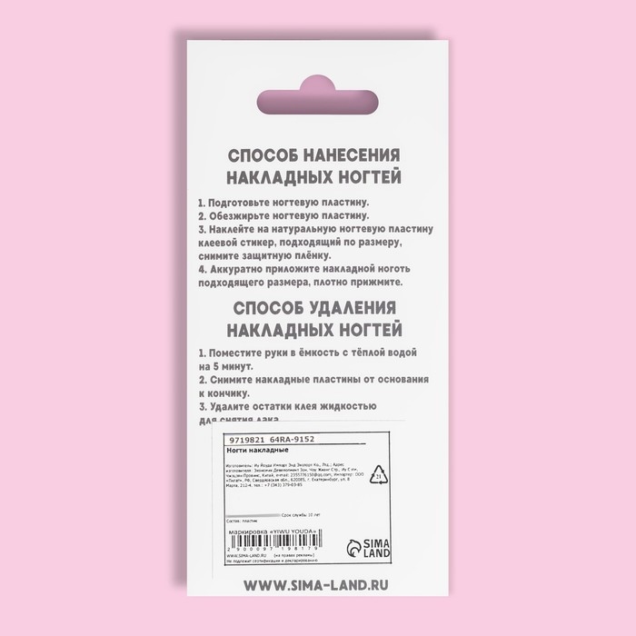 - Безопасность: гипоаллергенные материалы защищают от раздражений, что делает использование накладных ногтей комфортным для всех.
