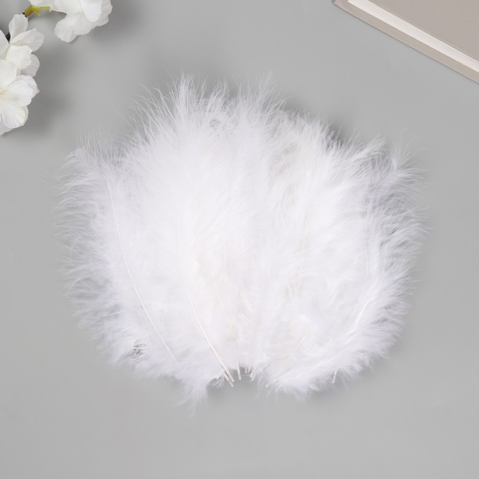Перо декоративное гусиное пуховое "Белое" набор 40 шт h=10-15 см