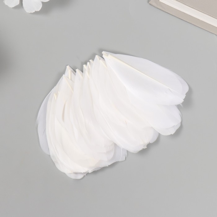 Перо декоративное гусиное "Белое" в форме листа набор 40 шт h=5-7 см