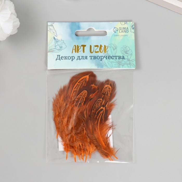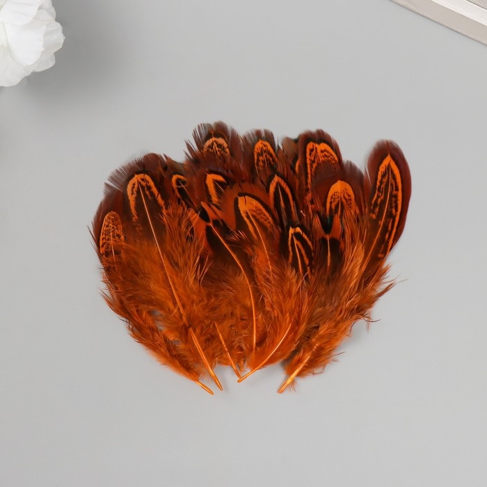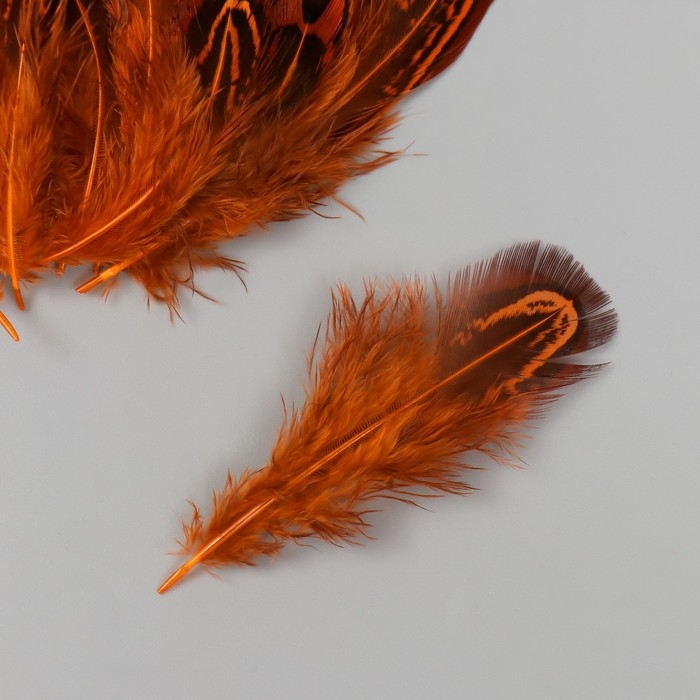 Перо декоративное фазана "Рябь. Оранжевая" набор 20 шт h=5-7 см