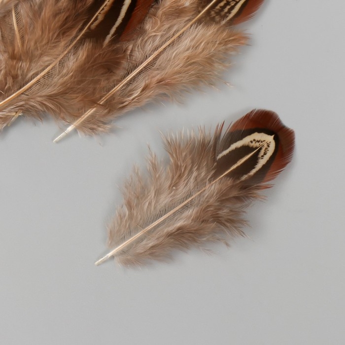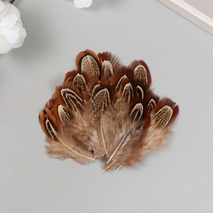 Перо декоративное фазана "Рябь. Коричневая" набор 20 шт h=5-7 см