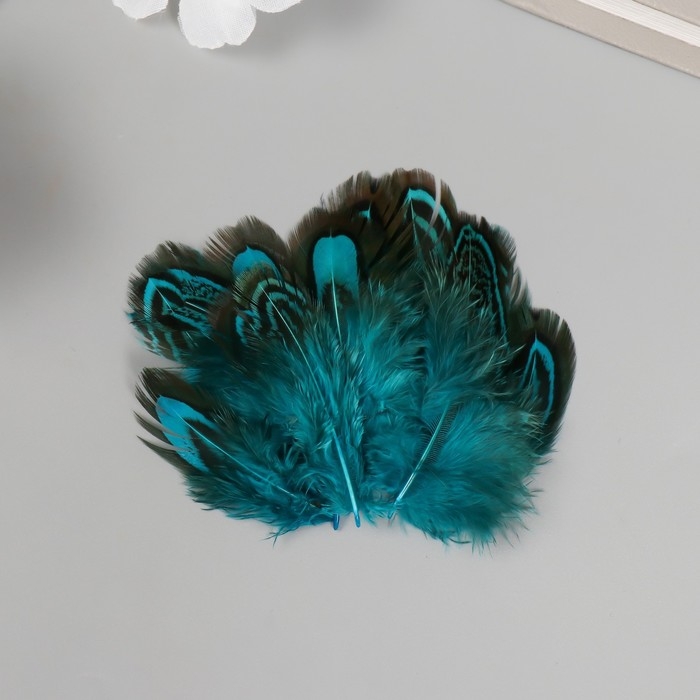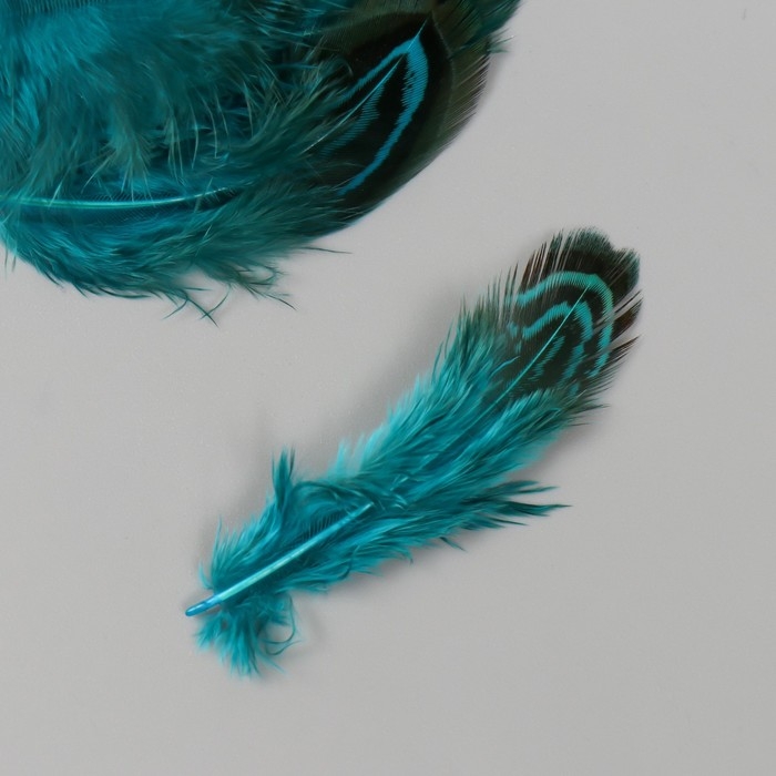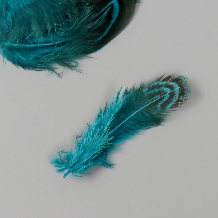 Перо декоративное фазана "Рябь. Голубая" набор 20 шт h=5-7 см