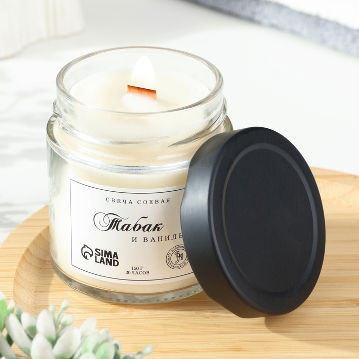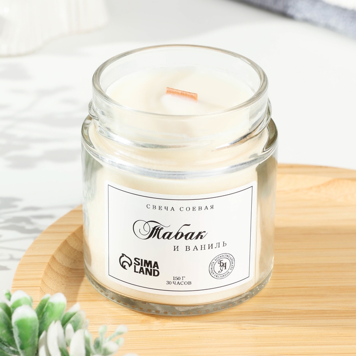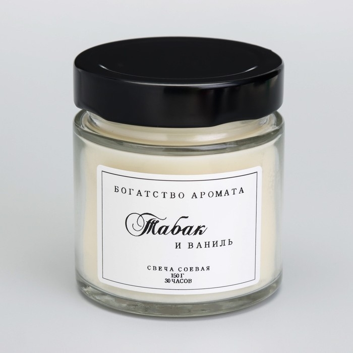 Свеча ароматическая из соевого воска в банке, 150 г, табак и ваниль