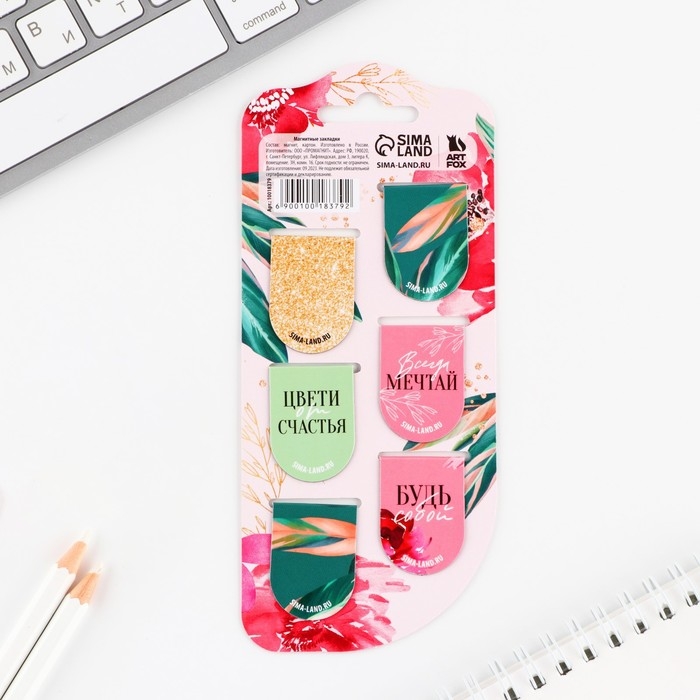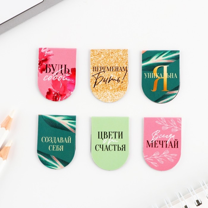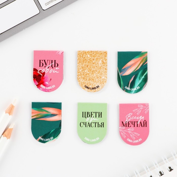 Закладки магнитные, 6 шт «Цветы»
