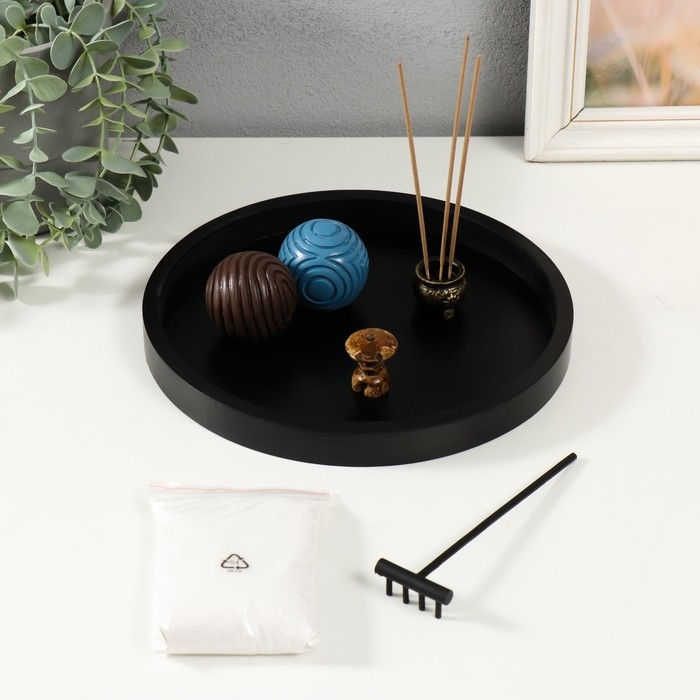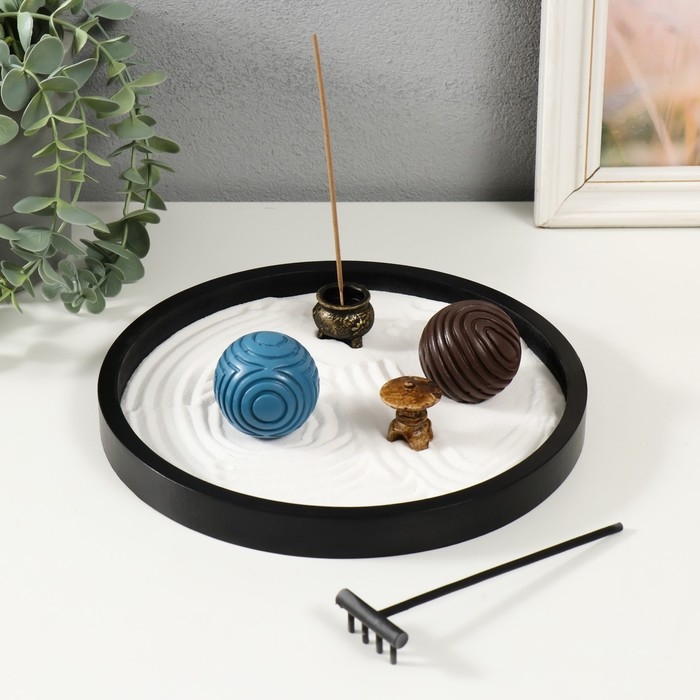 Сад камней Дзен "Два шара с рисунками" песок+аромапалочки 23х23х5,5 см