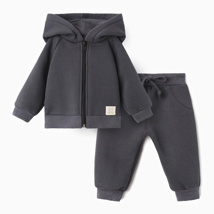 Костюм: толстовка и брюки Крошка Я Dino, рост 80-86, темно-серый