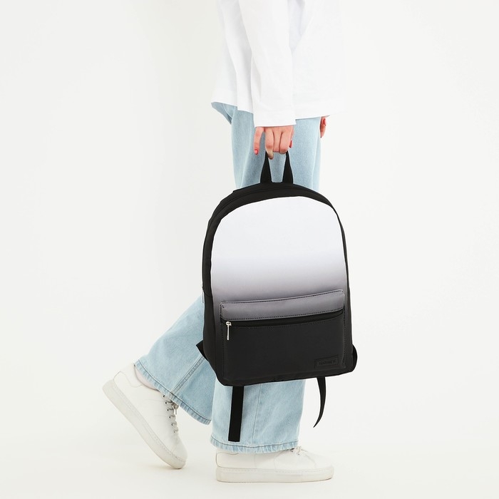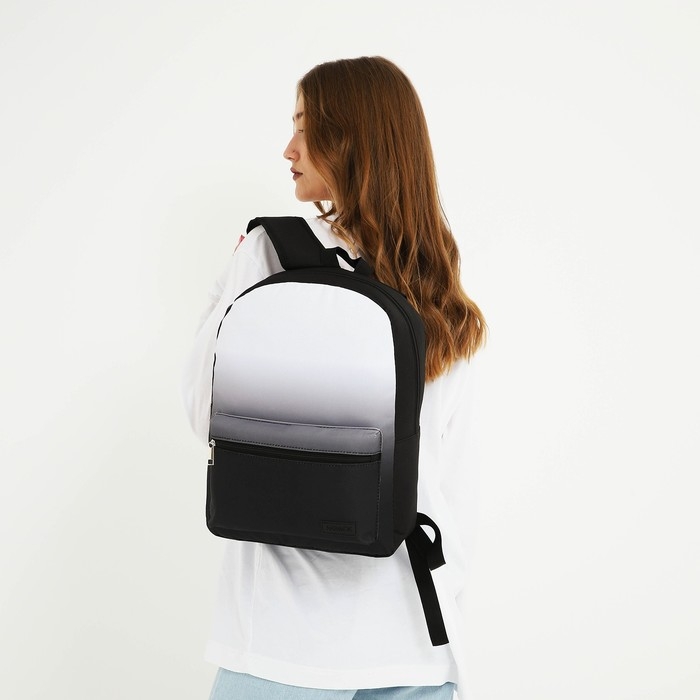 Рюкзак школьный текстильный с белым градиентом, 38х29х11 см, цвет чёрный, отдел на молнии