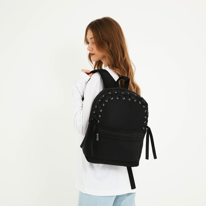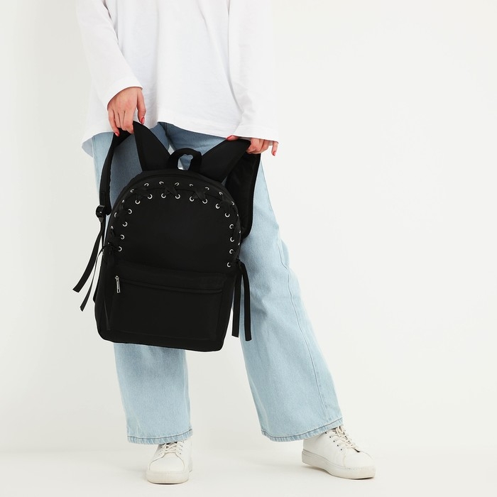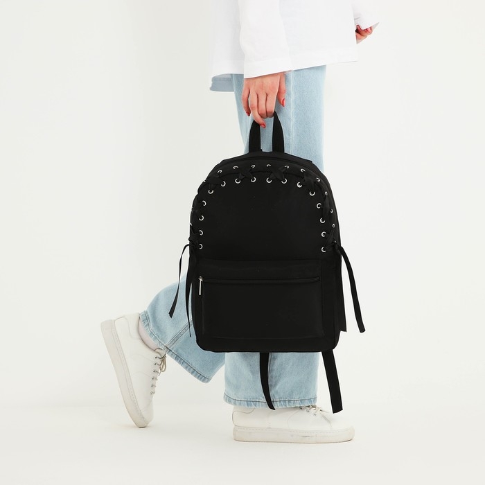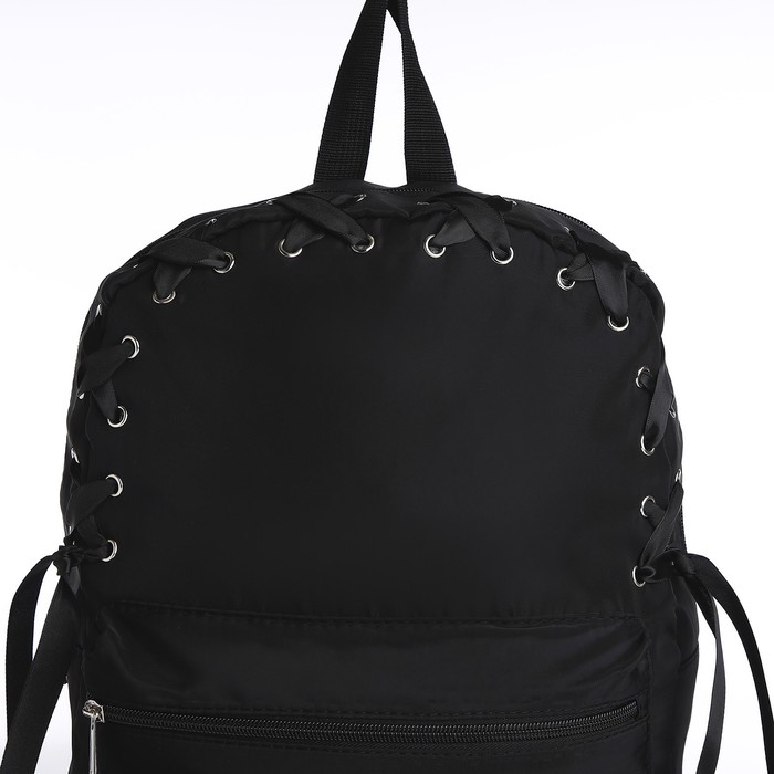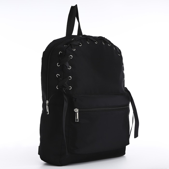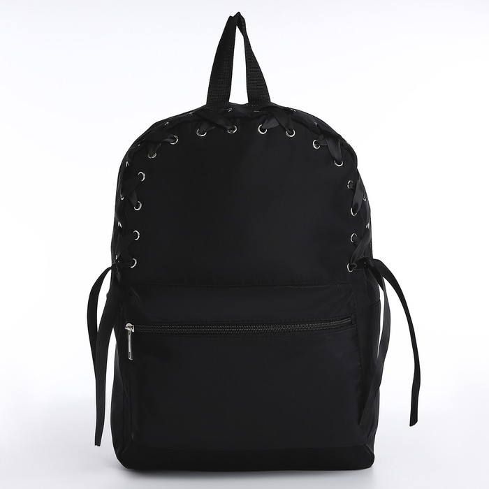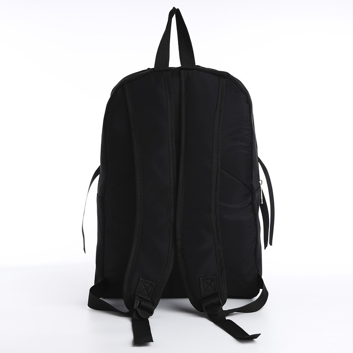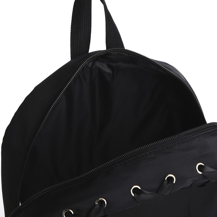 Рюкзак школьный текстильный с лентой, 38х29х11 см,цвет чёрный, отдел на молнии