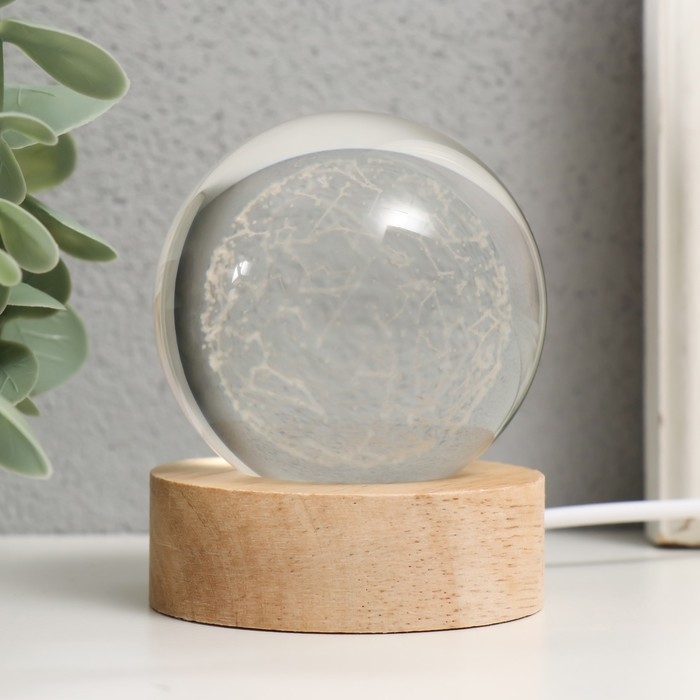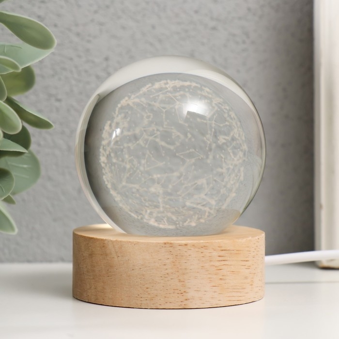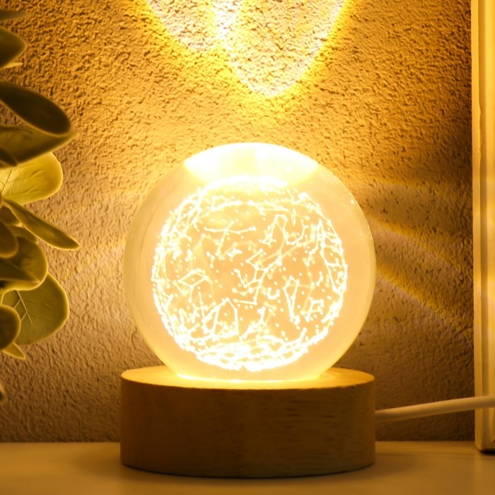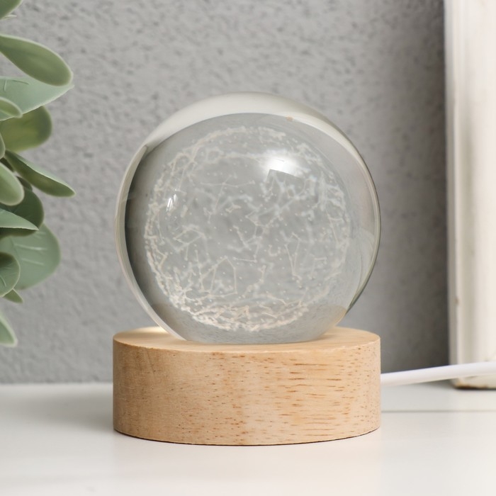 Сувенир стекло подсветка "Шар созвездий" d=6 см подставка дерево, USB 6,5х6,5х7,5 см