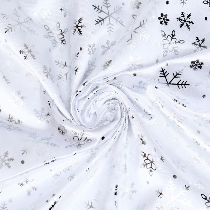 Ткань для рукоделия, атлас, белый со снежинками, лоскут 100 × 150 см