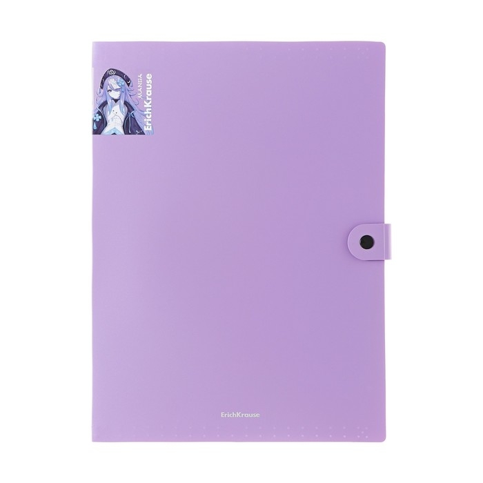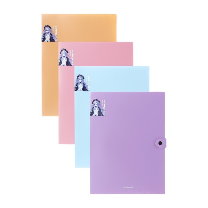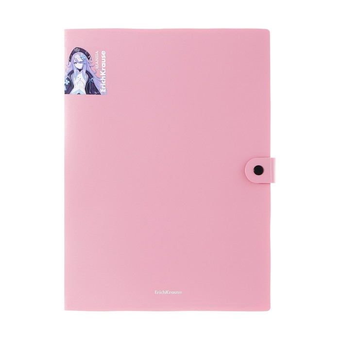 Папка-картотека, А4, 4 отделения, 600 мкм, ErichKrause "Matt Manga", на кнопке, тиснение "песок", микс