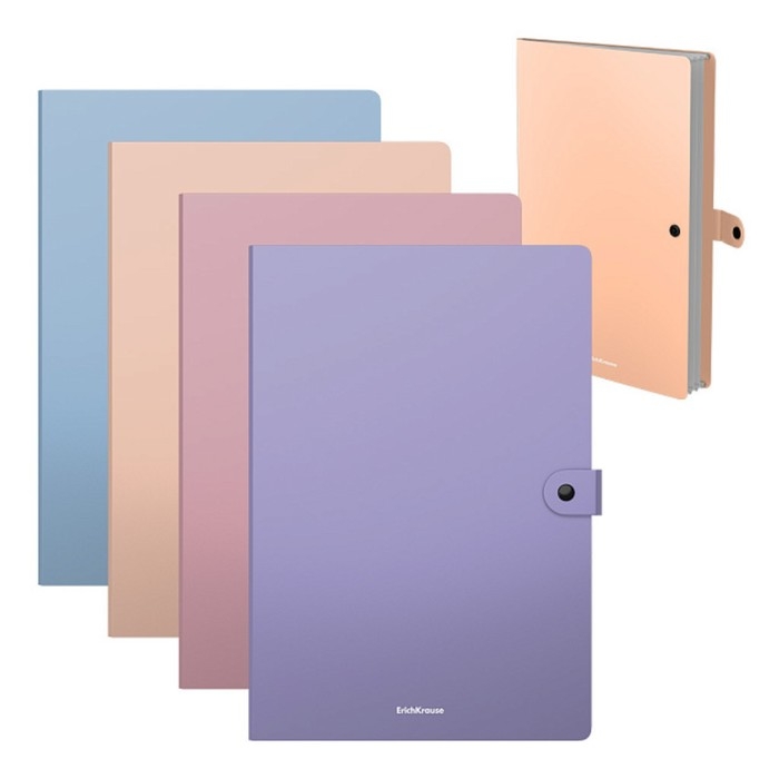 Папка-картотека, А4, 4 отделения, 400 мкм, ErichKrause "Matt Classic", на кнопке, тиснение "песок", микс