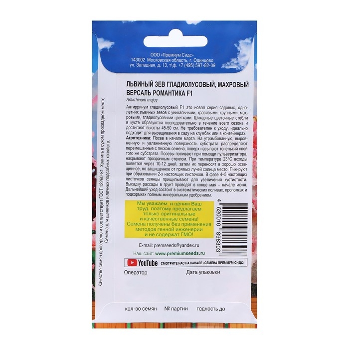 Антирринум гладиолусовый F1 - это новая серия садовых, однолетних львиных зевов с уникальными, красивыми, крупными, махровыми, гладиолусовыми цветками. Шикарные цветочные стебли в кусте образуются последовательно в течение всего сезона и достигают высоты 45-50 см. Не требователен к уходу, идеально подходит для выращивания в саду на клумбах или в контейнерах.