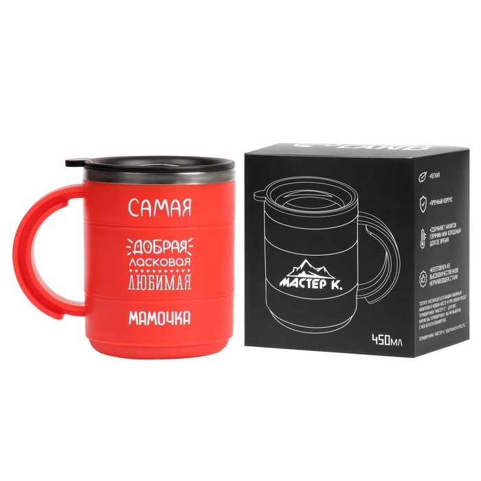 Термокружка "Мастер К" Поход "Самая добрая мамочка",450 мл,сохраняет тепло 2 ч, красная