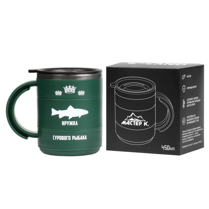 Термокружка "Мастер К" Поход "Кружка сурового рыбака", 450 мл, сохраняет тепло 2 ч, зеленая